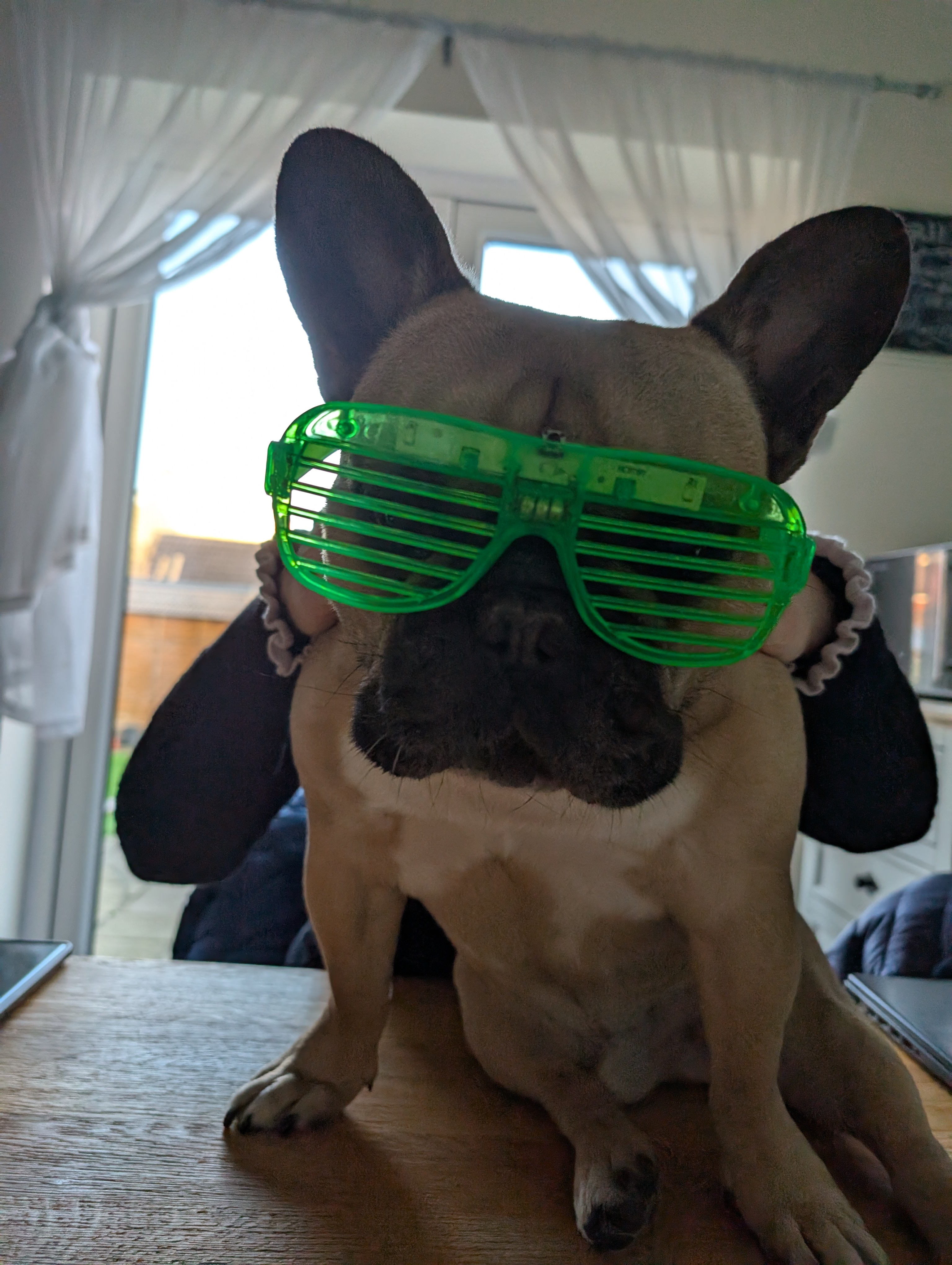 Top row begins with us trying to introduce luminous green glasses to Leffe and that went as you would imagine, with him trying to lick and eat them but we did manage a couple of decent pictures.