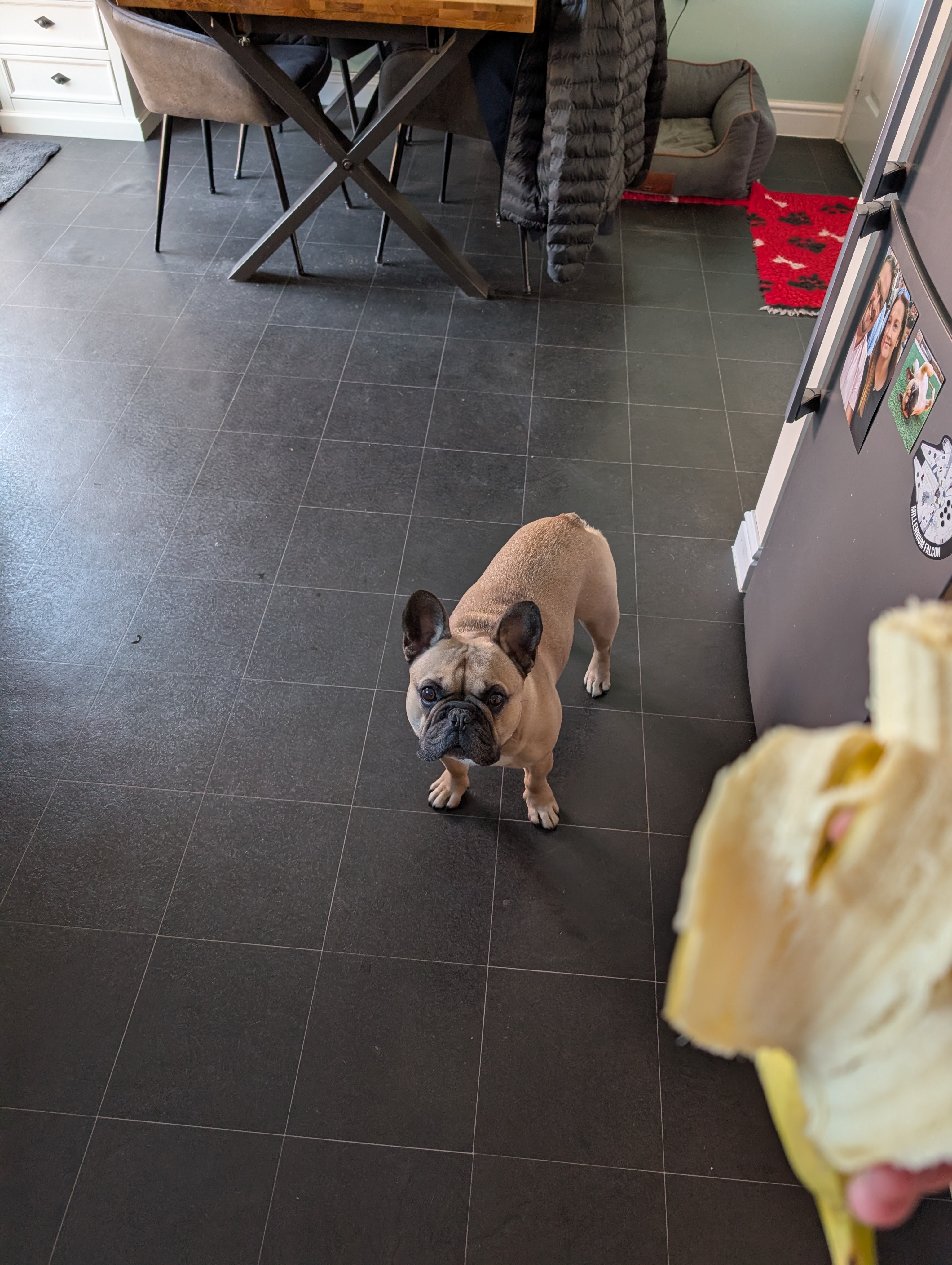 Bottom row is how everyday starts for Colleen as she eats her breakfast before going to work, Leffe ensures that any food dropped never reaches the floor, his second favourite pastime. He also likes to watch me eat in hopes that he will guilt me into sharing with him, as I have the breaking strain of a straw, he is correct in that assumption and always gets some of my banana.