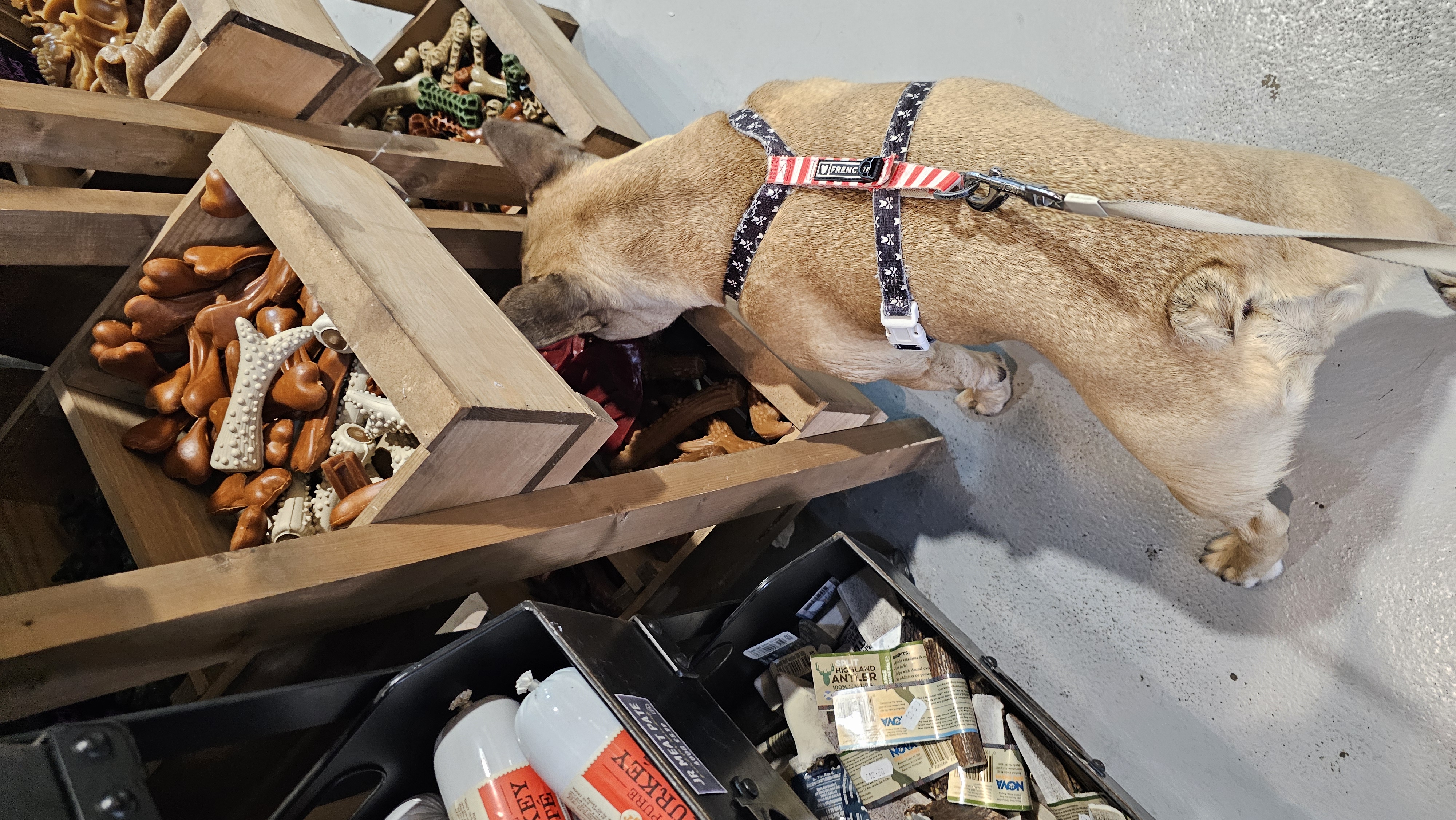 Leffe, in the middle row on the left, loves a good rummage around in his favourite pet store :) As always, he is very eager to get out on one of his daily walks, and lastly, he is always desperate to get upstairs in the morning and see where his other Pawrent is!