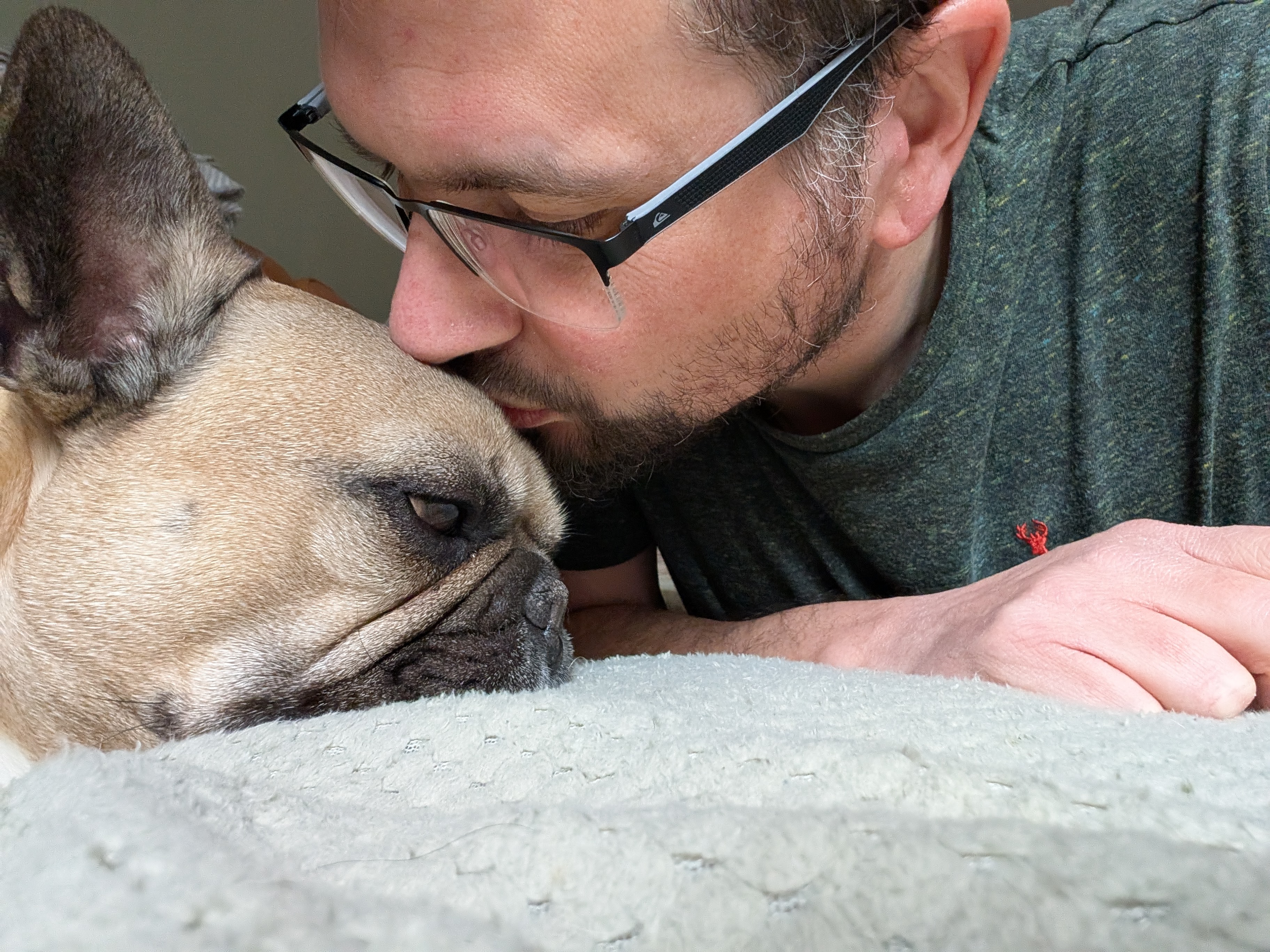 The bottom left is just another picture of how majestic he looks when he poses for a shot. In the middle, this is another Frenchie he sees on his walk, and they are still getting used to each other, as you can see. Lastly, in picture form the immense love I feel for this wee man and can never say in words.