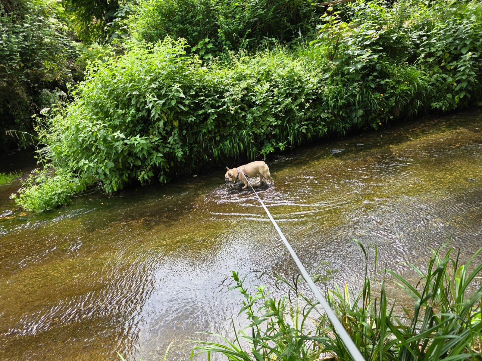 Today, Colleen took him for a walk in Lacock, he got to enjoy a nice dip in the river and even managed to meet a few other dogs, apparently he wasn’t his normal self and said hello to a few of them! He tends to be great with dogs smaller than him, but anything bigger and he thinks he can take them on and will shout at them. He visited Professor Slughorn’s house, but unfortunately, he wasn’t at home (That is for those Harry Potter fans out there ⚡)